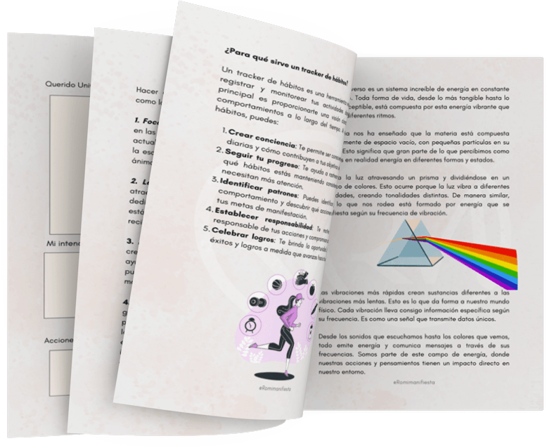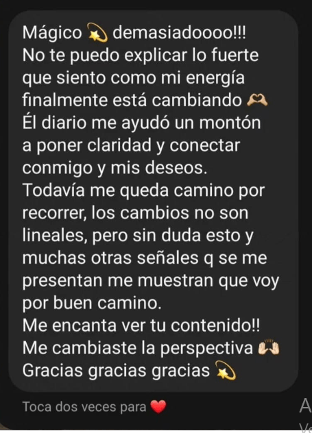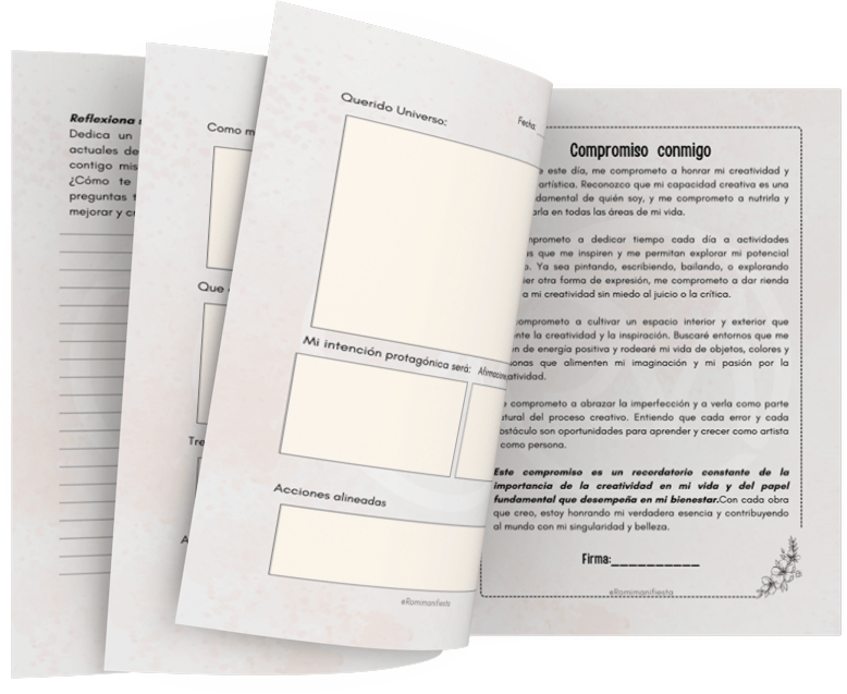 Además de acceder a más de 6 clases donde te enseño paso a paso cómo manifestar desde tu identidad, te llevás las 3 versiones del Diario de Manifestación, para que puedas aplicarlo todos los días con intención, presencia y propósito…
