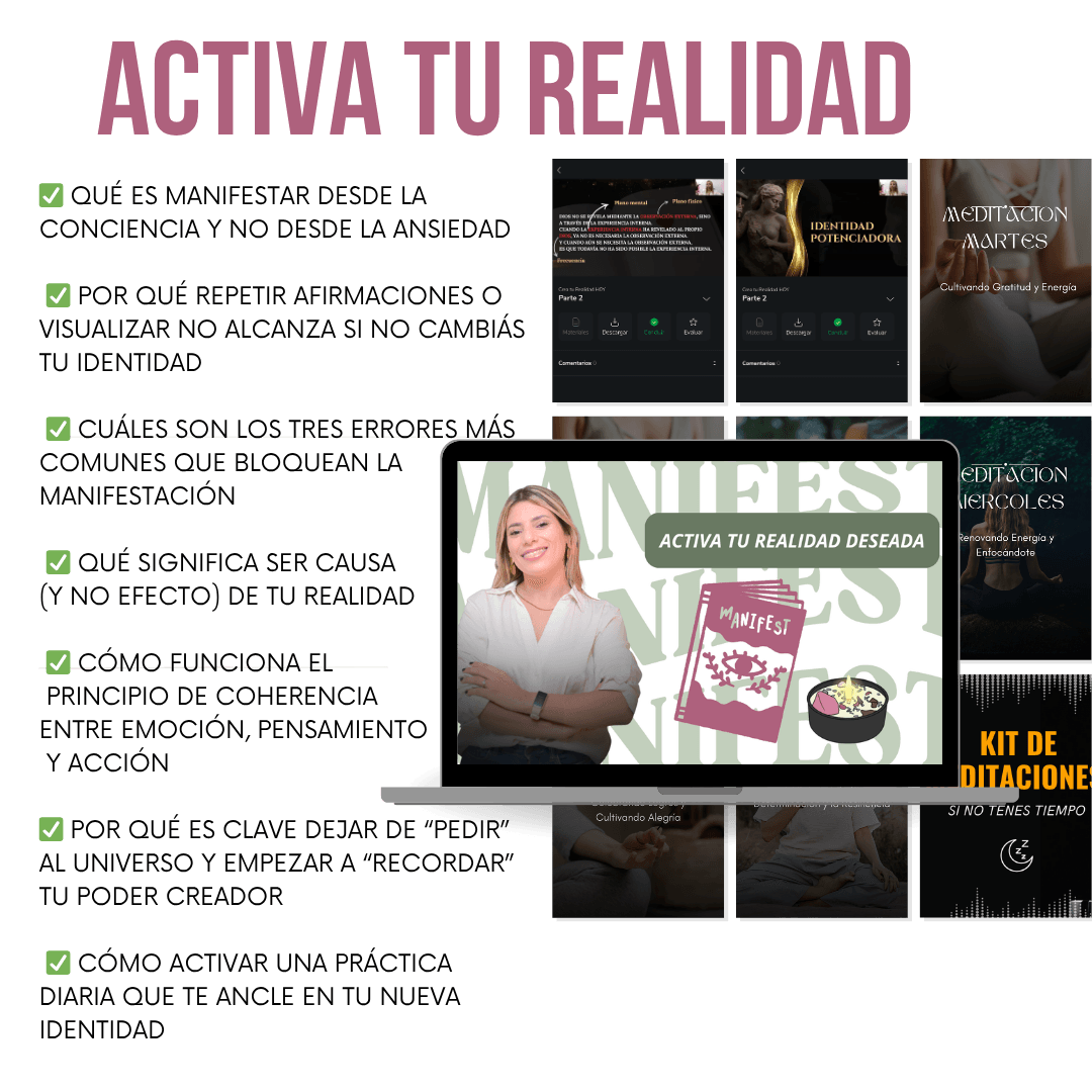 Con el Kit de Manifestación Consciente vas a reentrenar tu mente, tu energía y tu identidad en solo 10 minutos al día.